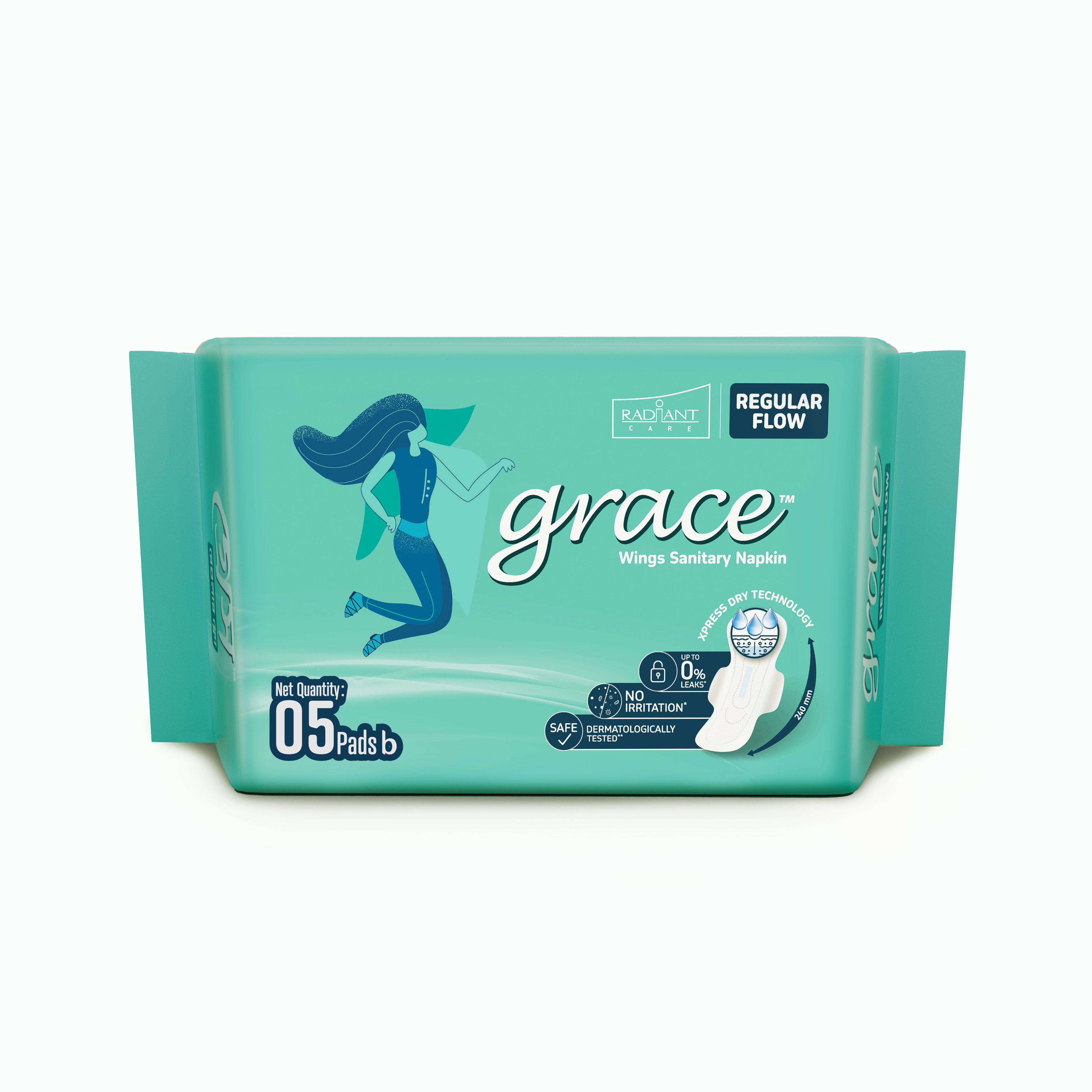 Combined with Express Dry Technology, Super absorbent polymer and ADL, ensures instant dryness, while the six-layered anti-leak channels give tension-free protection and 100% comfort in Regular flow days.